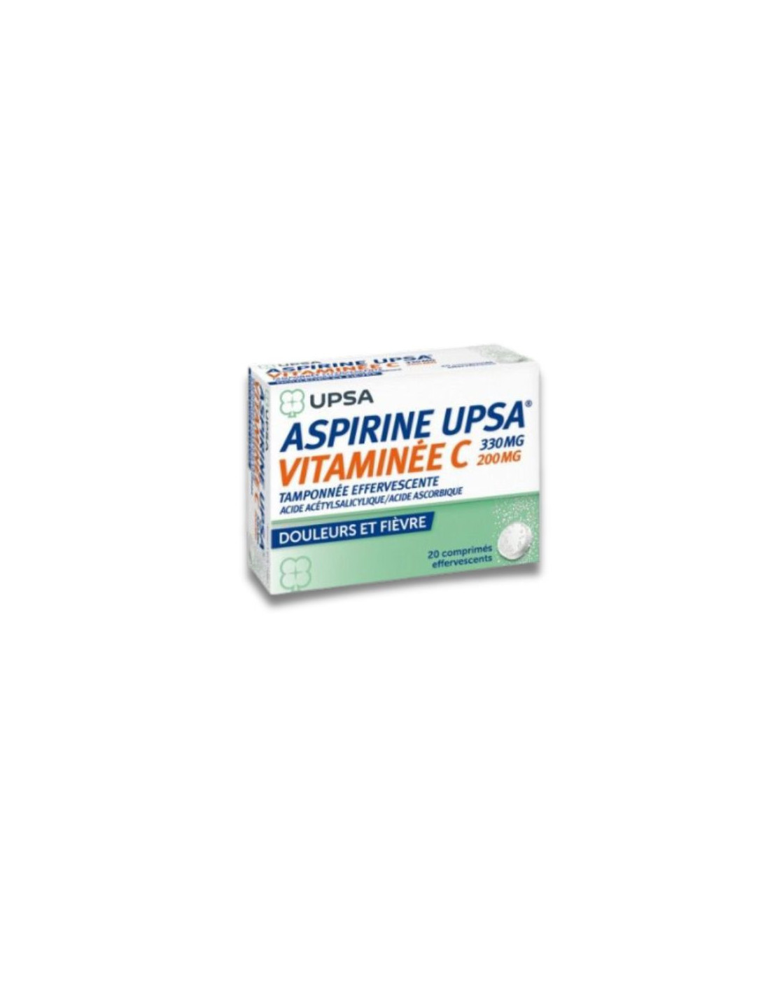 La Aspirina UPSA con Vitamina C 330mg + 200mg es una combinación terapéutica que incluye ácido acetilsalicílico, conocido por sus propiedades analgésicas y antipiréticas, y vitamina C, un antioxidante que puede ayudar a mantener el sistema inmunitario.