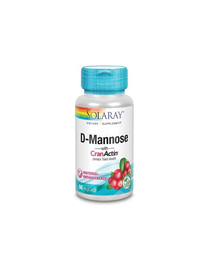 El d-mannose es el ingrediente activo principal de las cápsulas de Solaray D-Mannose. Este es un azúcar simple que se encuentra de forma natural en diversas frutas y es conocido por su aplicación en temas relacionados con la salud del tracto urinario.