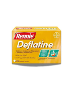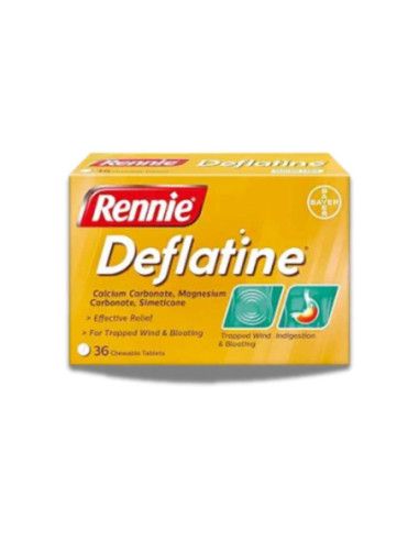 Especialmente diseñado para tu bienestar, Rennie Deflatine está disponible en envases de 36 comprimidos, ofreciendo una cantidad económica y práctica para tener en casa.